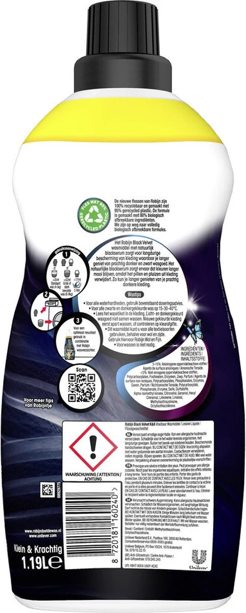 4x Robijn Klein & Krachtig Wasmiddel Black Velvet 1,19 Liter