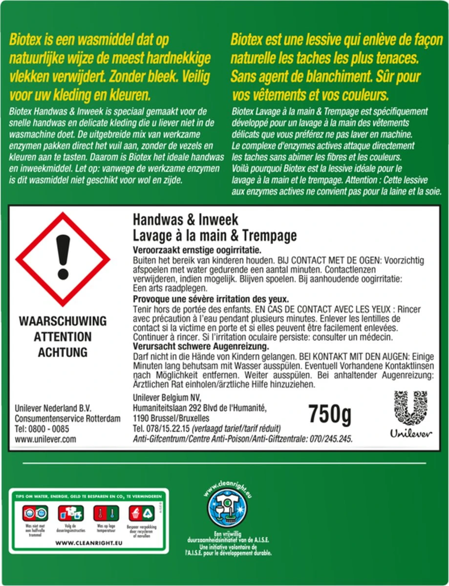 Biotex Waspoeder Handwas & Inweek – 750 Gram