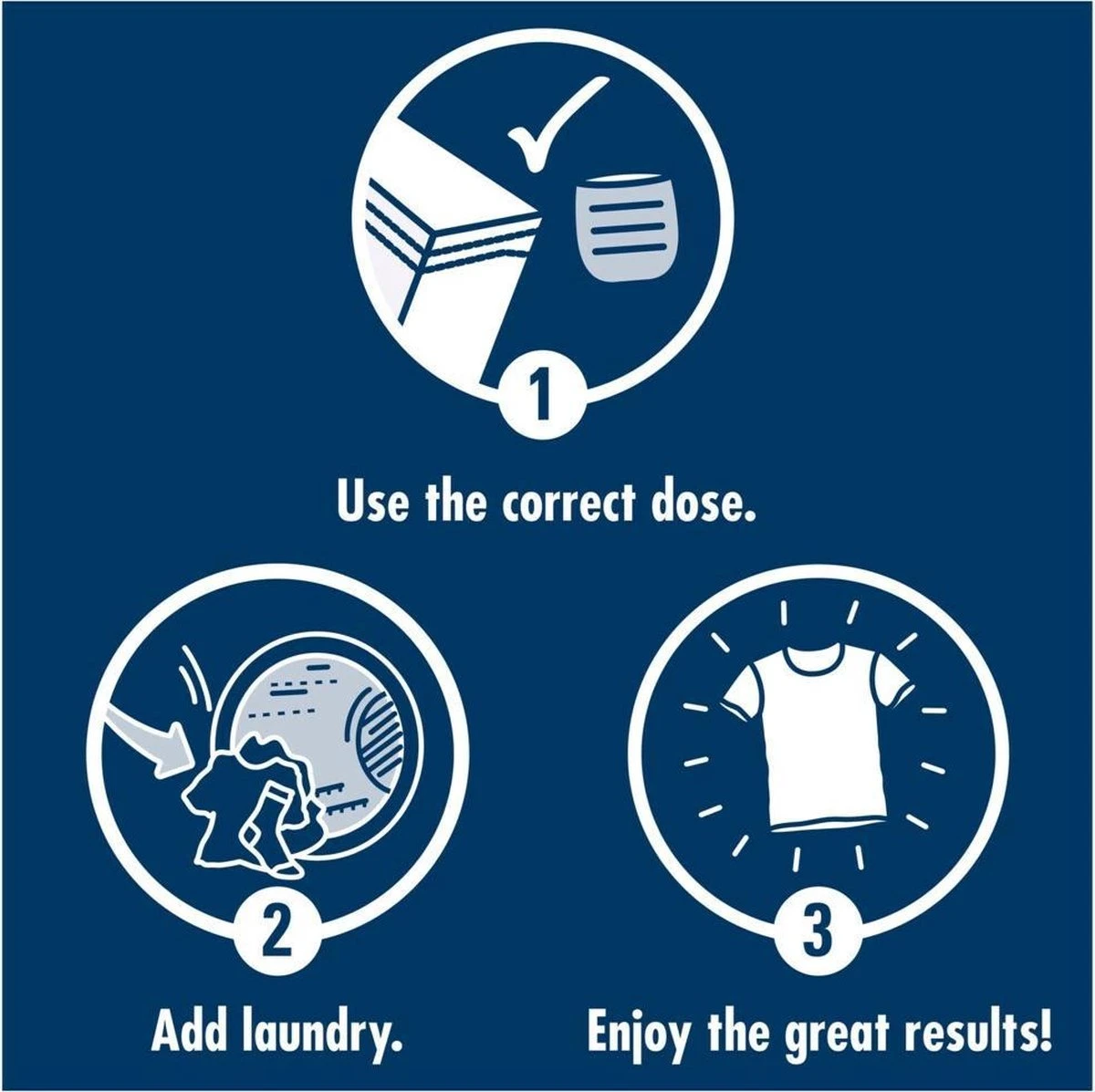 Gebruik aanbevolen dosering en doseer in de lade van de wasmachine of in een doseerbal in de trommel.